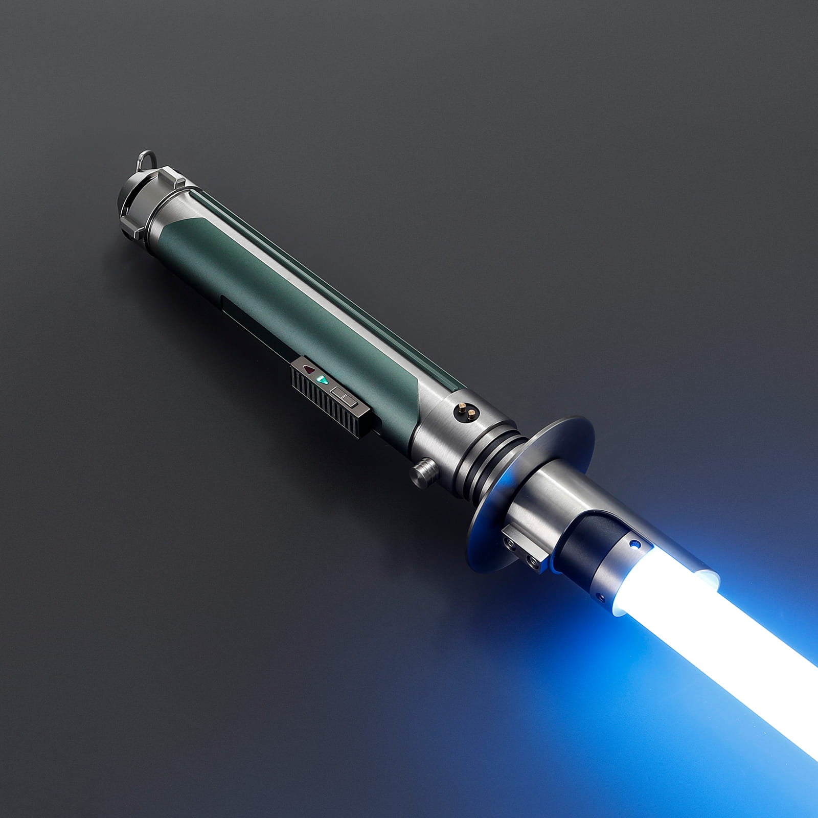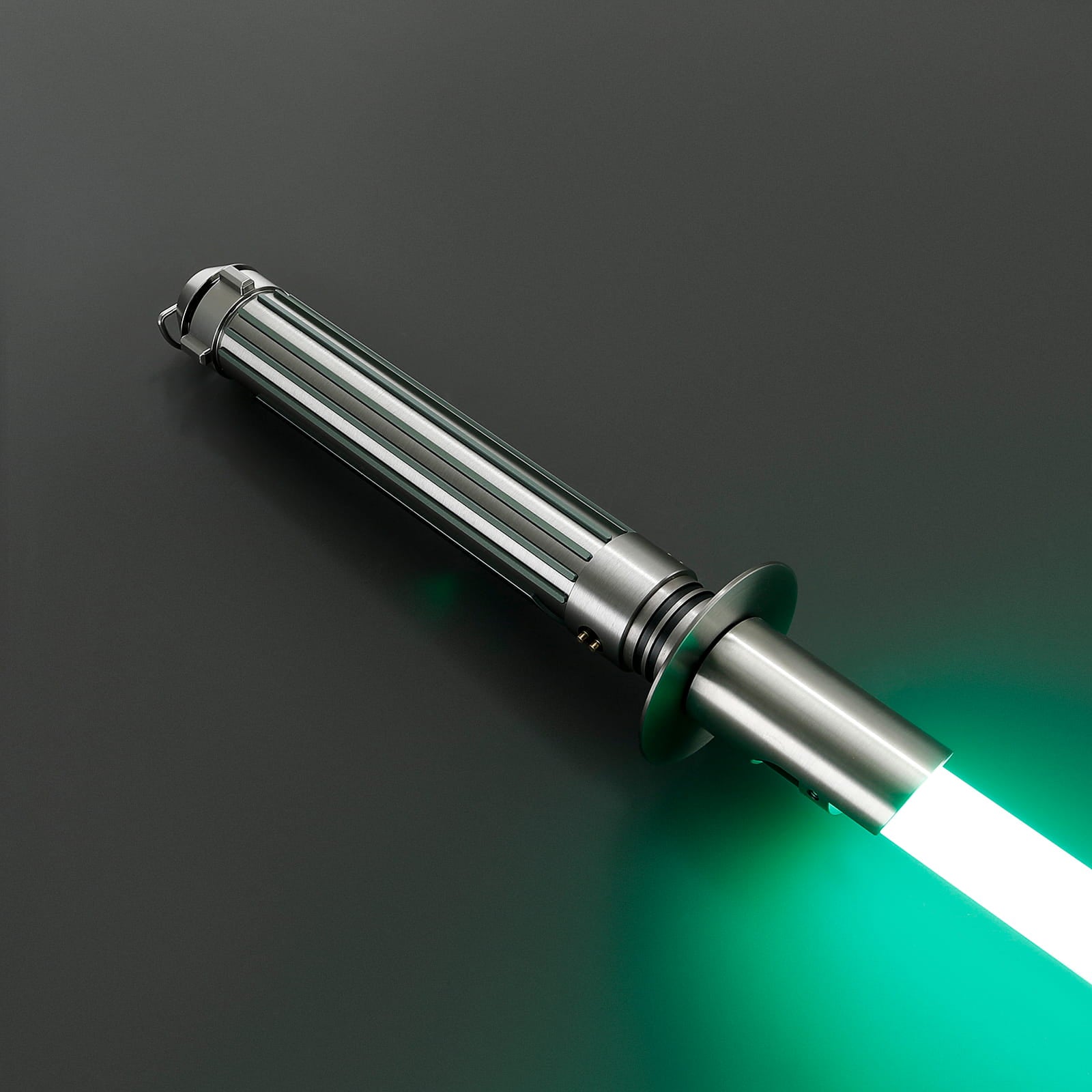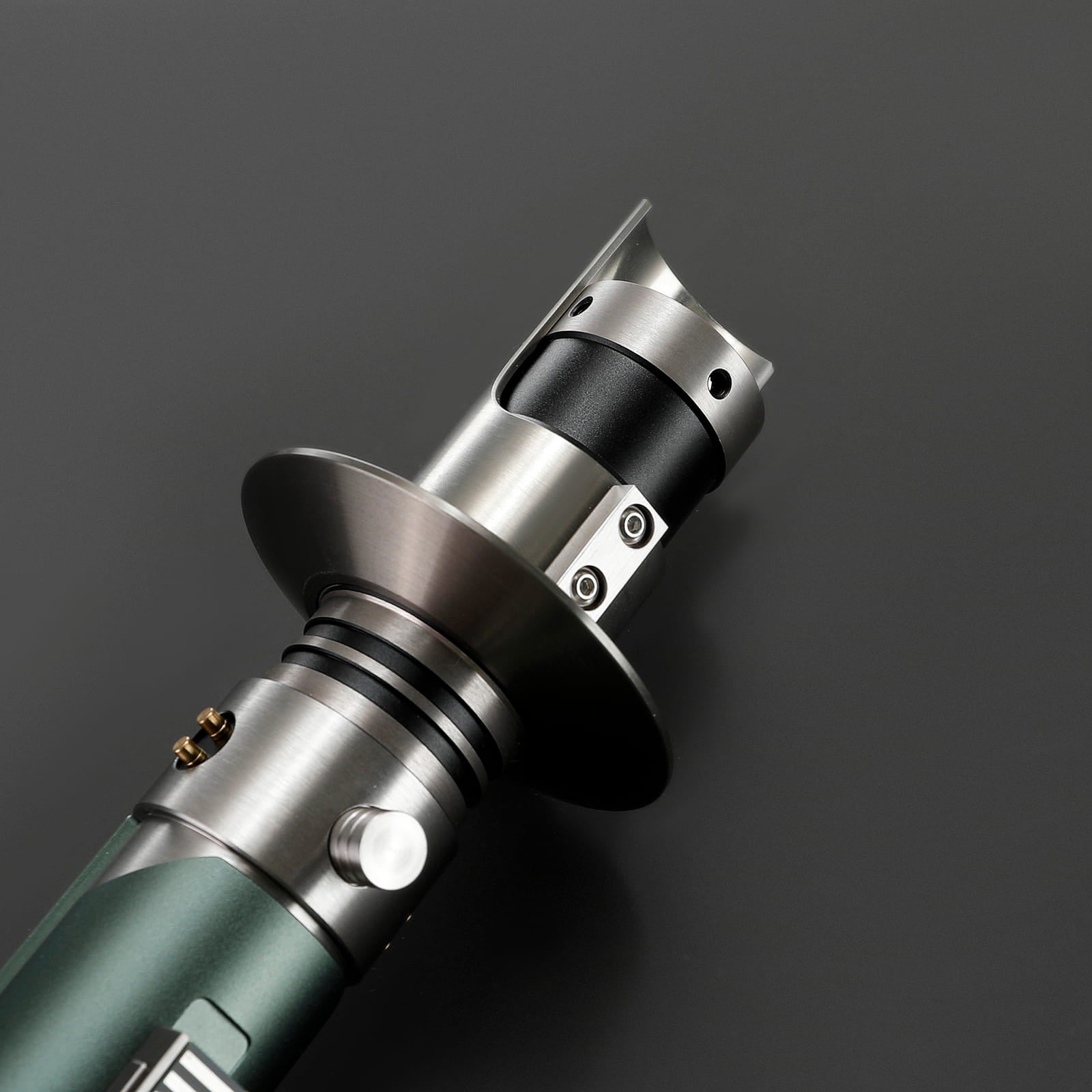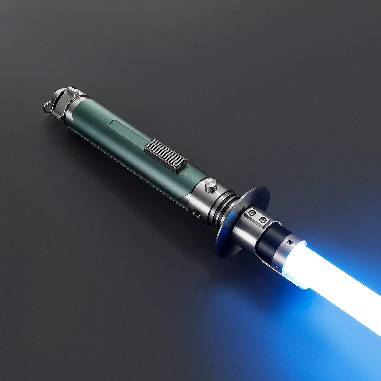 Het handvat van de Commander is gemaakt van een stevig solide geborsteld aluminium handvat en voorzien van een groene grip aan de voorkant en smalle verticale ribbels op de achterkant. De emitter is voorzien van extra bepaling en details. Het katana achtige schild helpt met verdedigen en geeft tevens zeer professionele look. De lightsaber ligt extra soepel in de hand en heeft een zeer goede gewicht balans. Met ingebouwde belt buckle is deze lightsaber gemakkelijk mee te nemen of aan je riem te hangen. Is ideaal voor cosplay en duelleren. Maar ook perfect om als trofee ten toon te stellen in huis!